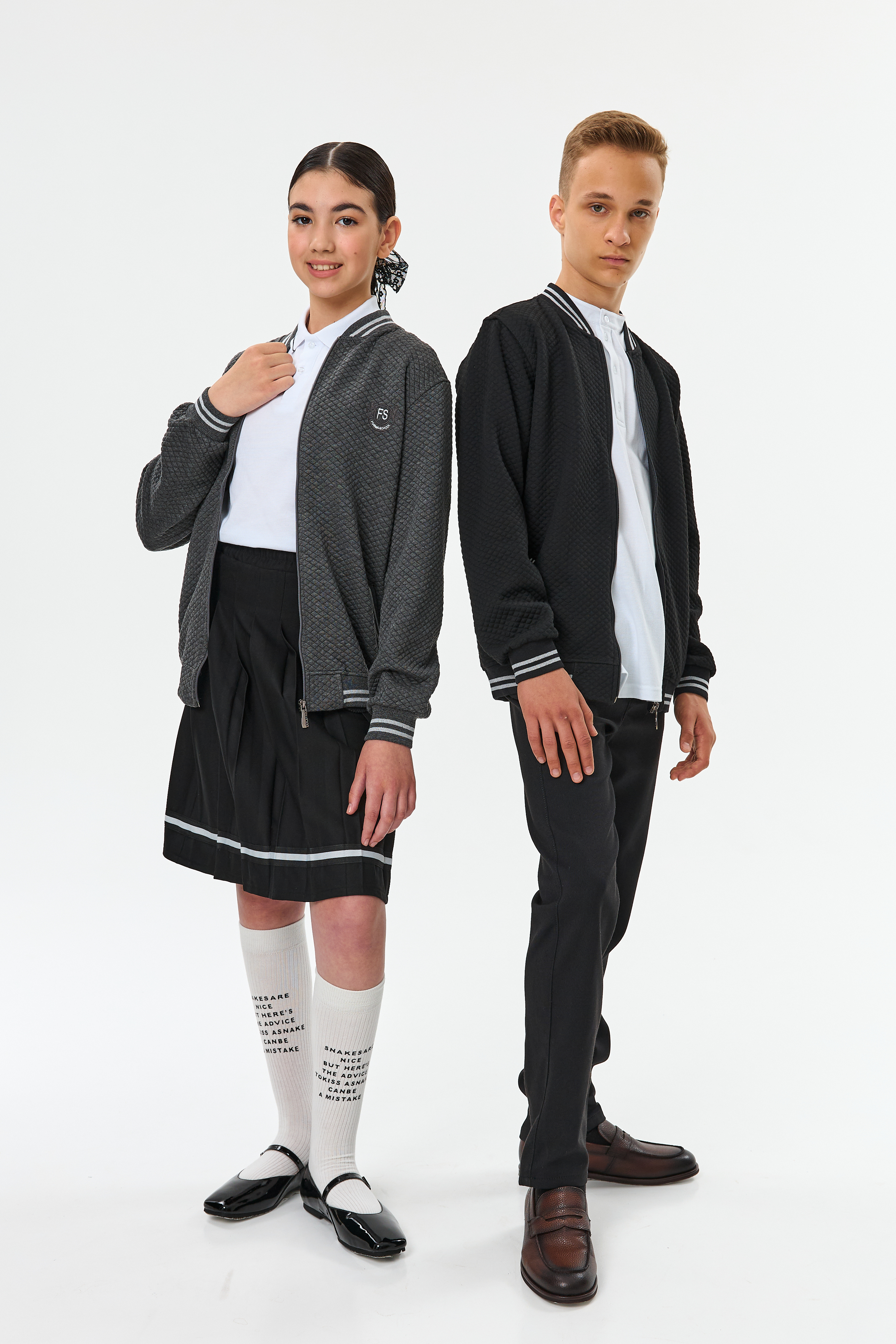 Темно-синий и темно-серый цвета идеально подойдут для любого школьного образа, делая его более стильным и современным.