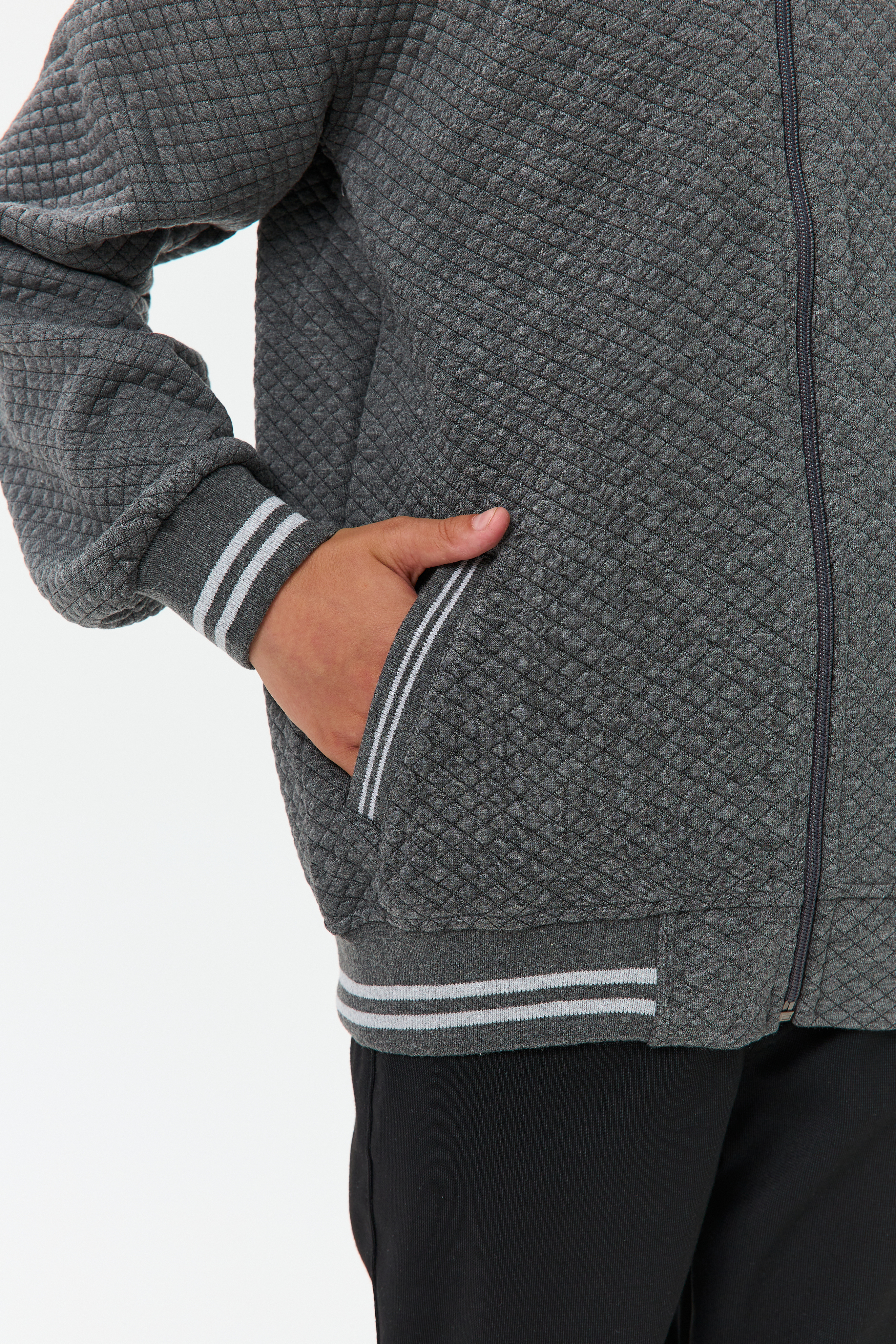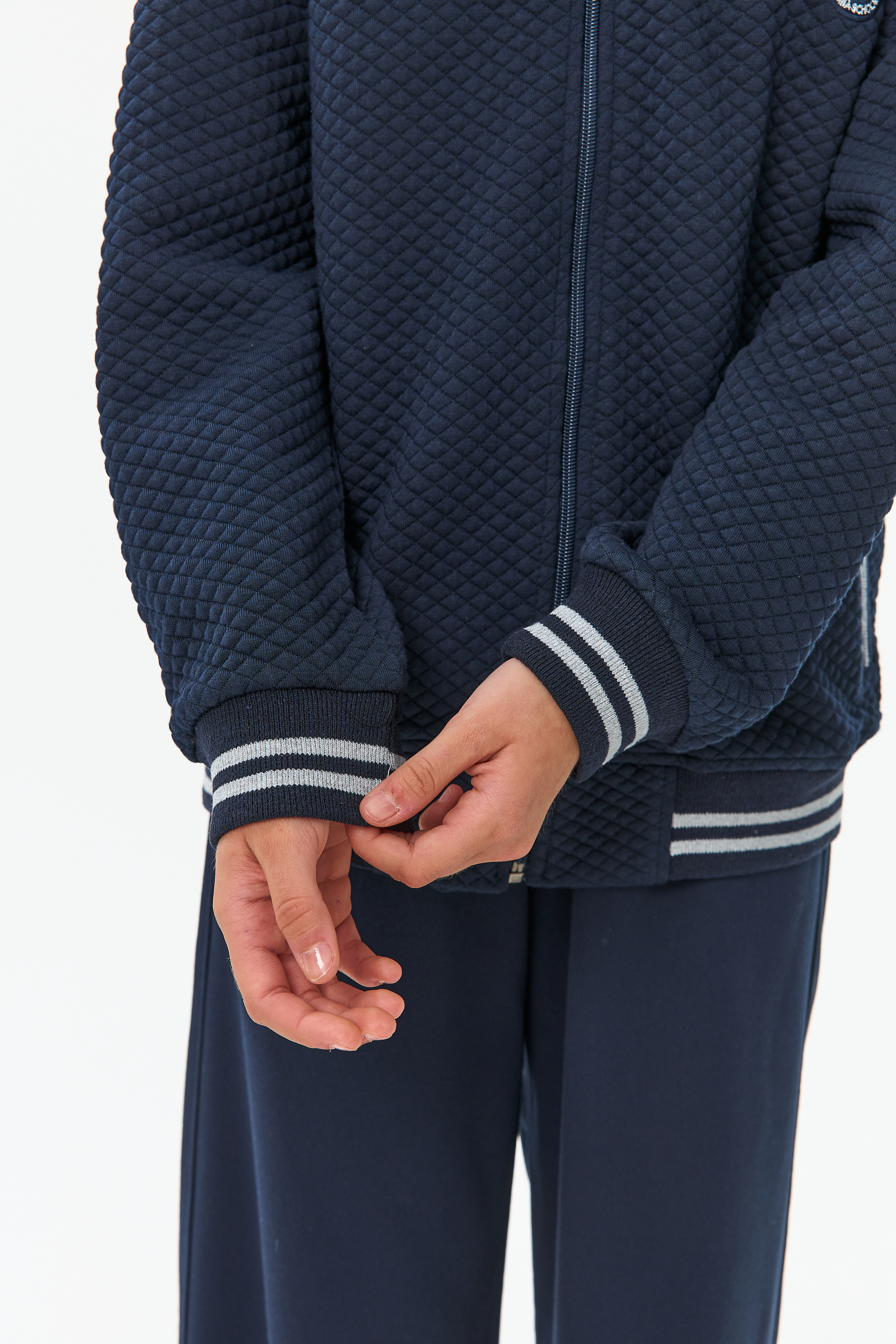 Обработка низов, рукавов и горловины эластичной резинкой кашкорсе обеспечивает плотное прилегание к телу, предотвращая продувание. Идеальный выбор для прохладной погоды.